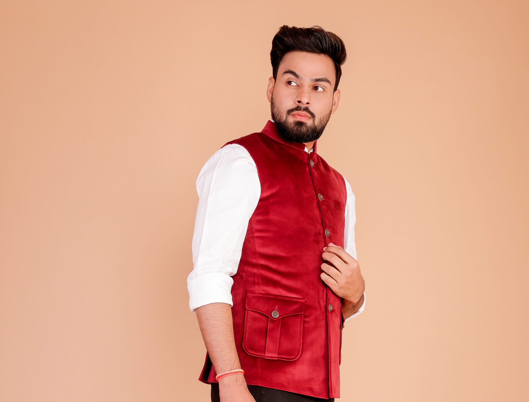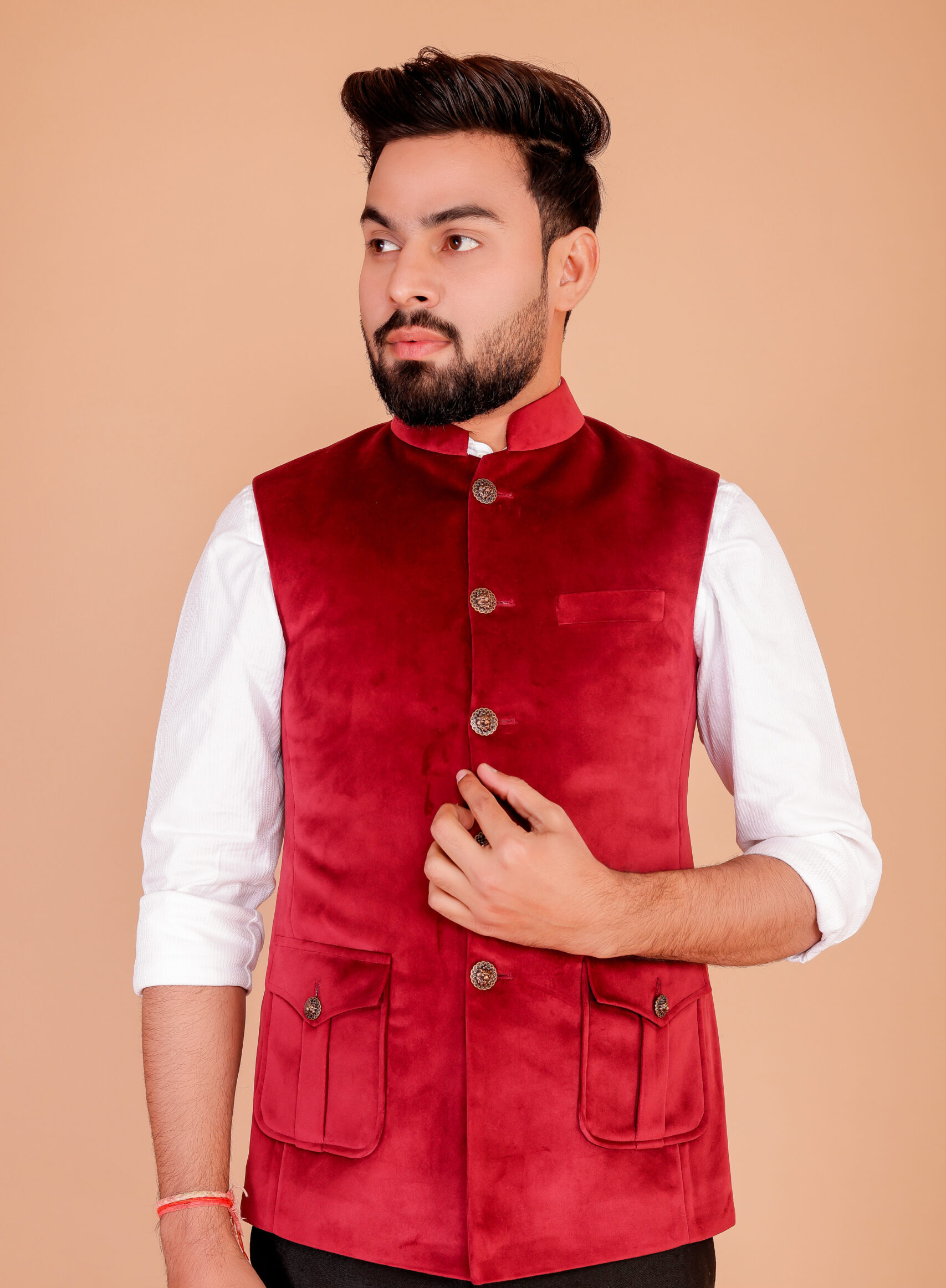 - Unique Design: Featuring a sleek half-jacket cut, perfect for layering over casual shirts or traditional outfits, creating a sharp, polished look.